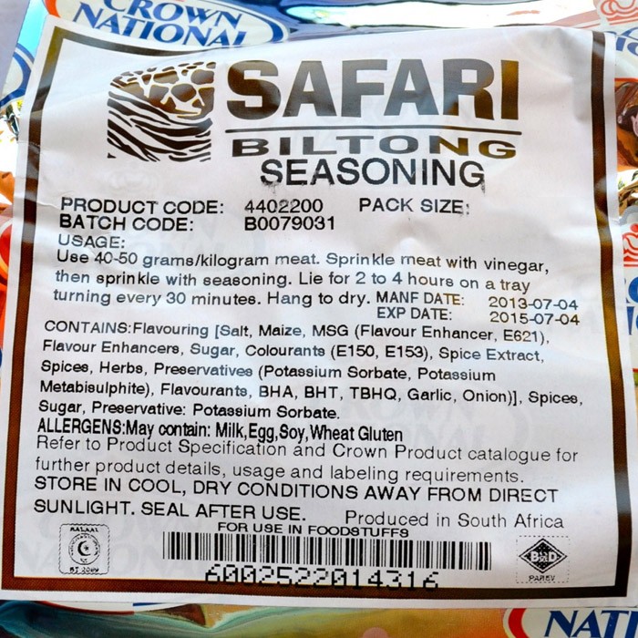 Safari Biltong Spice 2kg. A popular biltong spices in South Africa. Used for DIY Biltong, Drywors and Boerewors.